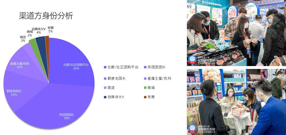 本次現(xiàn)場設置了100個渠道展位,社群團購頭部平臺,快團團頭部團長,有贊頭部團長和微店頭部團長,群接龍頭部團長等,都報名設置了選品位。