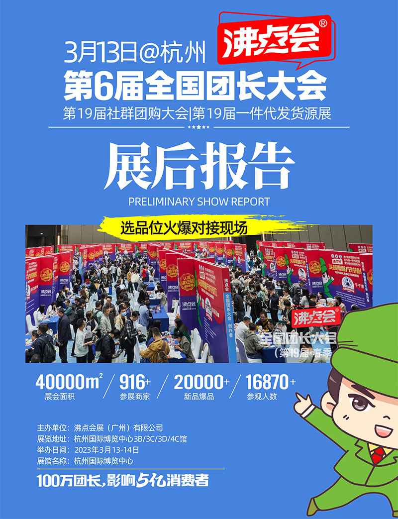 沸點會展(廣州)有限公司主辦的“第19屆沸點會(杭州)供應(yīng)鏈展、第六屆全國團長大會、社群團購與直播選品會、一件代發(fā)貨源對接會、直播+社群團購貨源供應(yīng)鏈展覽會、新渠道大會/新渠道博覽會、19屆CNRE中國新零售博覽會、沸點私域大會”【以上簡稱:供應(yīng)鏈展】于2023年3月13-14日在杭州國際博覽中心成功召開,圓滿落幕。