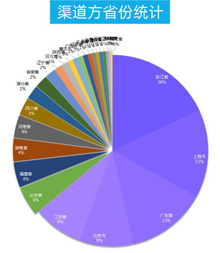 本屆全國團長大會,渠道方來源地方排名:浙江省,上海市,廣東省,北京市,江蘇省。