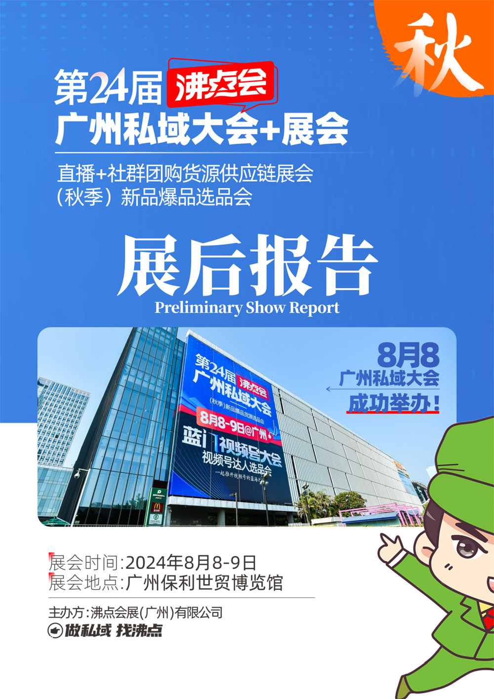 第24屆沸點(diǎn)會(huì)、廣州私域團(tuán)長(zhǎng)大會(huì)暨2024(廣州)直播+社群團(tuán)購(gòu)貨源供應(yīng)鏈展覽會(huì),于2024年8月8-9日,在廣州保利世貿(mào)博覽館圓滿舉辦!同期舉辦了2024(廣州)新品爆品貨源展覽會(huì)、2024全國(guó)地標(biāo)美食博覽會(huì)以及有機(jī)食品店主選品會(huì),本屆展